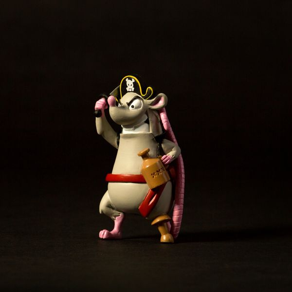 You can find Bilge in a can of Rummy Cola. What can we say? Bilge is a bit out there and he does love his grog. But he has lived in some dark and damp places since the accident changed him from a soft furry mouse and he has learned to handle himself when he needs to. Don't ask for a sip of his grog though because he doesn't share and he will use that saber if he has to. He might not be a born leader but he can get the job done if required.